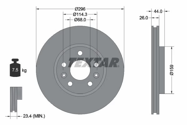 | Bolt hole circle Ø (mm) | 114.3 |