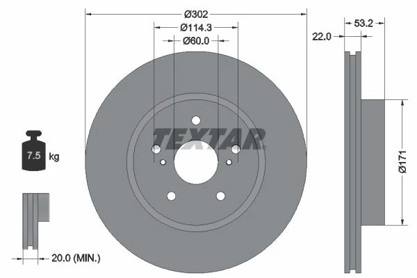 | Bolt hole circle Ø (mm) | 114.3 |