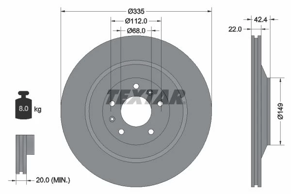| Bolt hole circle Ø (mm) | 112 |