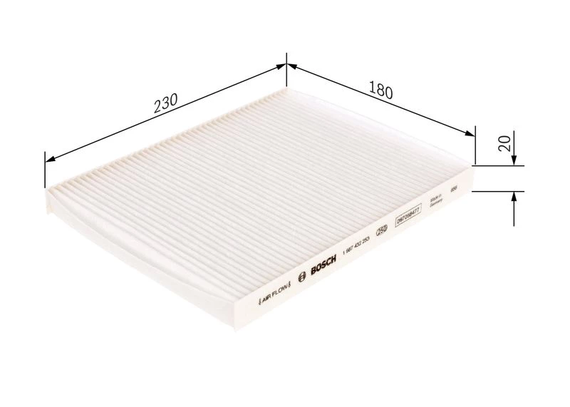Upgrade or maintain your vehicle with the high-quality BOSCH Cabin Filter Cabin Pollen Filter — part number 1 987 432 253, available now at A-Z Halifax.