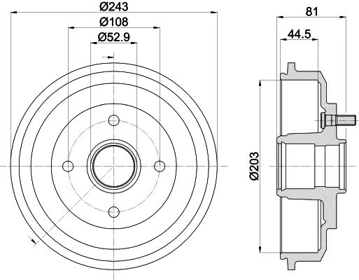 | Outer brake drum diameter (mm) | 243 |